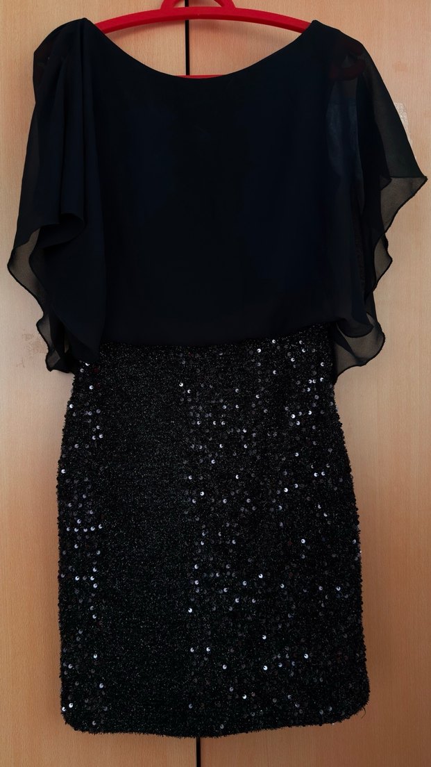 Siyah, drapeli, kolsuz ve yuvarlak yaka mini elbise, gösterişli ve desensiz tasarımıyla partiler için uygundur. ✨
