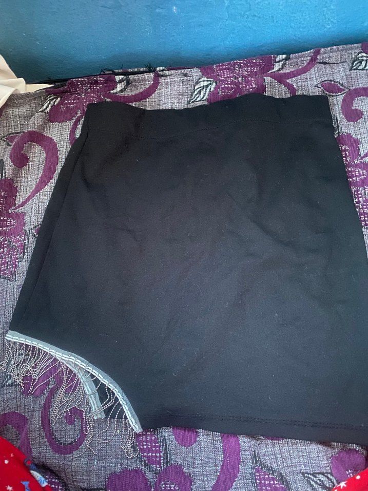 Siyah renkte, sentetik kumaştan yapılmış, bol kesim ve drapeli detaylara sahip mini hamile eteği. Günlük kullanım ve sokak stili için uygundur.