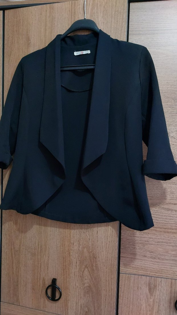 Siyah renkli, drapeli detaylı, kısa mini boy kadın blazer. Uzun kollu, regular fit ve yakası kesik modeldir. Ofis ortamına uygundur.