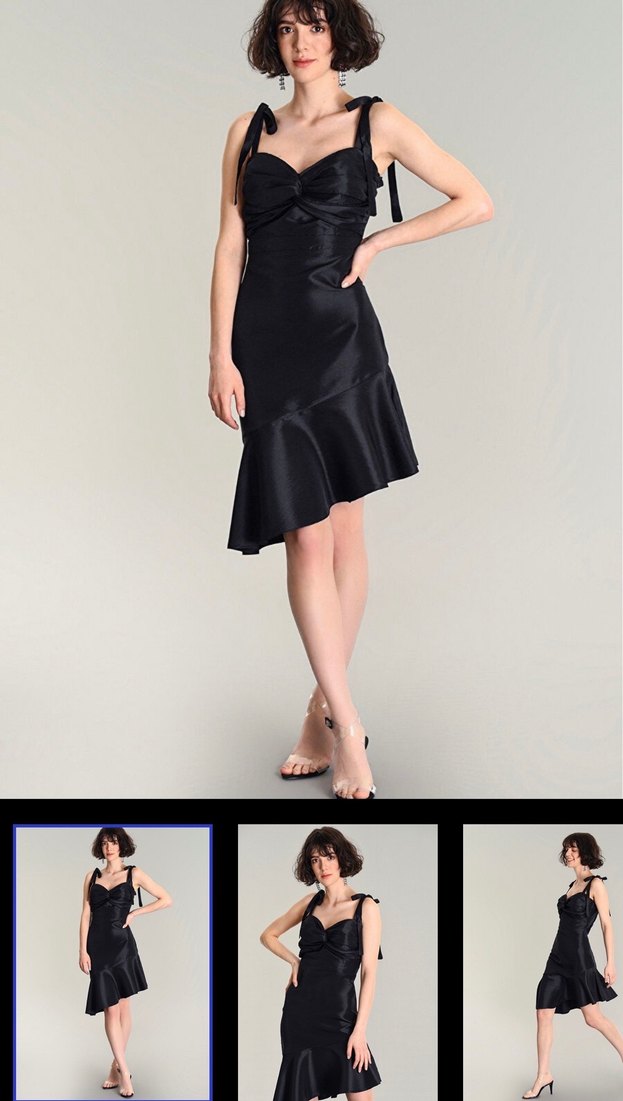 Drapeli tasarımı, askılı ve V yakalı bu siyah mini elbise, romantik akşamlar için ideal. Cesur ve gotik tarzda, vücuda oturan şık bir model.