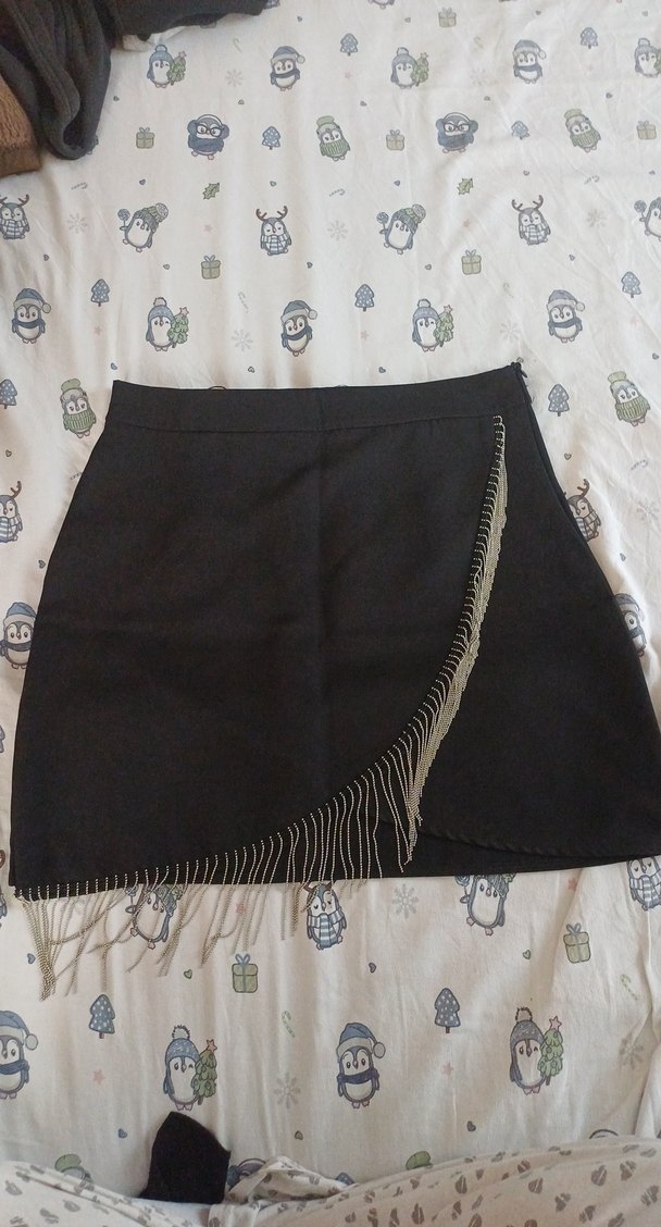 Siyah, drapeli ve nakışlı detaylara sahip dar kesim mini etek, gotik ve Paris tarzını yansıtan şık bir parça. Ürün hiç giyilmemiştir sadece etiketi çıkmıştır.Hbir kusuru yoktur.