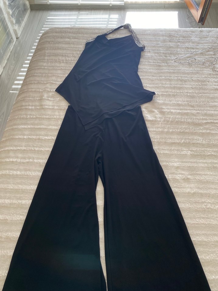 Siyah, degaj yaka straplez tasarıma sahip, bol kesim Kolsuz, sentetik kumaştan üretilmiş, avant-garde sokak modasına ve partilere uygun.