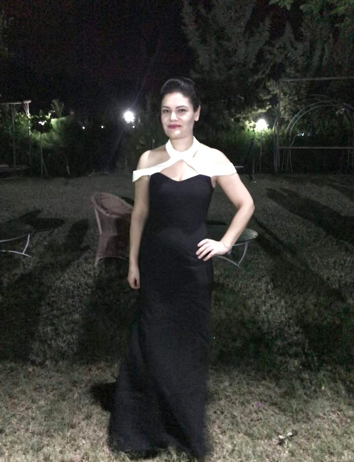 Drapeli ve parlak siyah renkte, straplez ve kolsuz, vücuda oturan uzun abiye elbisedir. Düğünler için uygundur, cesur gotik tarzı yansıtır. 1 60 boy ölçüsünde
