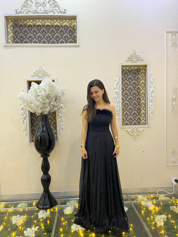 Siyah Drapeli Straplez Uzun Abiye Elbise