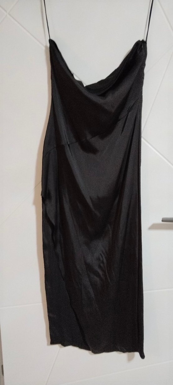 Siyah, drapeli ve straplez yakalı, satenimsi kumaştan yapılmış, uzun ve kolsuz, vücuda oturan kadın elbisesi. Gotik ve şık tarzlar için uygundur.