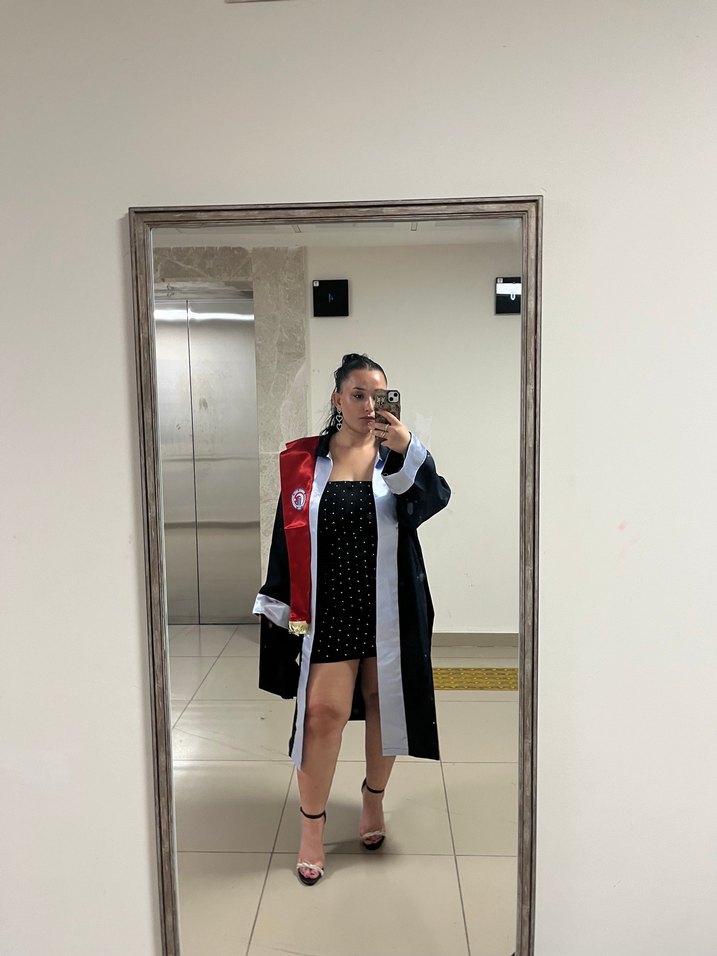 Siyah renkte, drapeli ve askılı kollu, yaka detayı notched lapel olan, minimalist tarzda mezuniyet elbisesi. Ofis ve sokak kullanımına uygun.