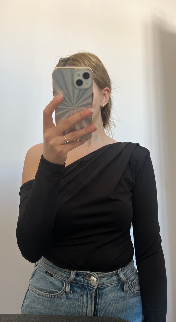Siyah Drapeli Tek Omuz Uzun Kollu Bluz