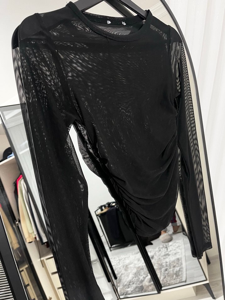 Siyah Drapeli Transparan Uzun Kollu Bluz