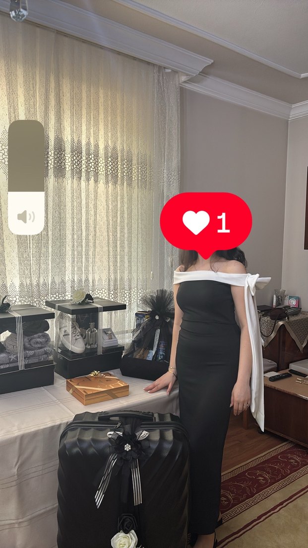 Siyah, parlak ve drapeli ipek görünümlü kumaştan uzun, straplez ve vücuda oturan elbise, ofis için uygundur. ✨ 1 kere giyildi