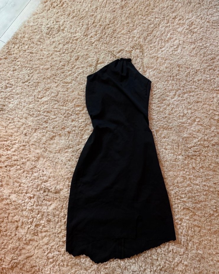 Siyah, drapeli ve straplez uzun abiye elbise, romantik akşam buluşmaları için minimalist gotik tarzda şık bir seçimdir.