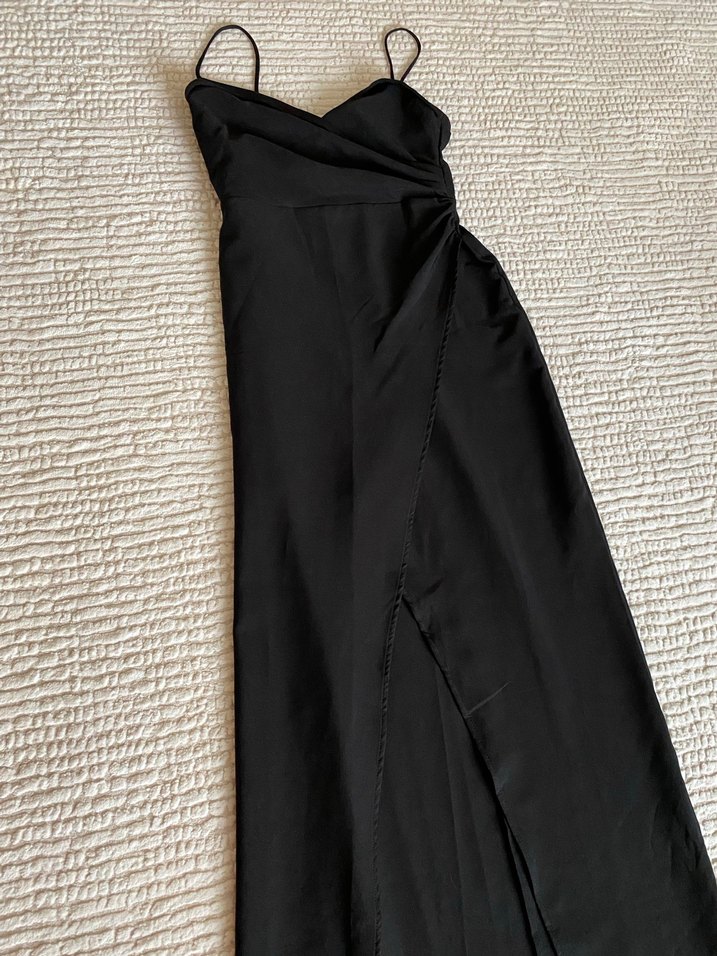 Siyah Drapeli Uzun Askılı Elbise