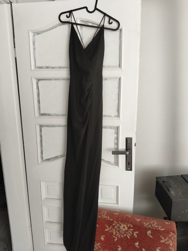 36 Beden Askılı Siyah Uzun Yırtmaçlı Abiye