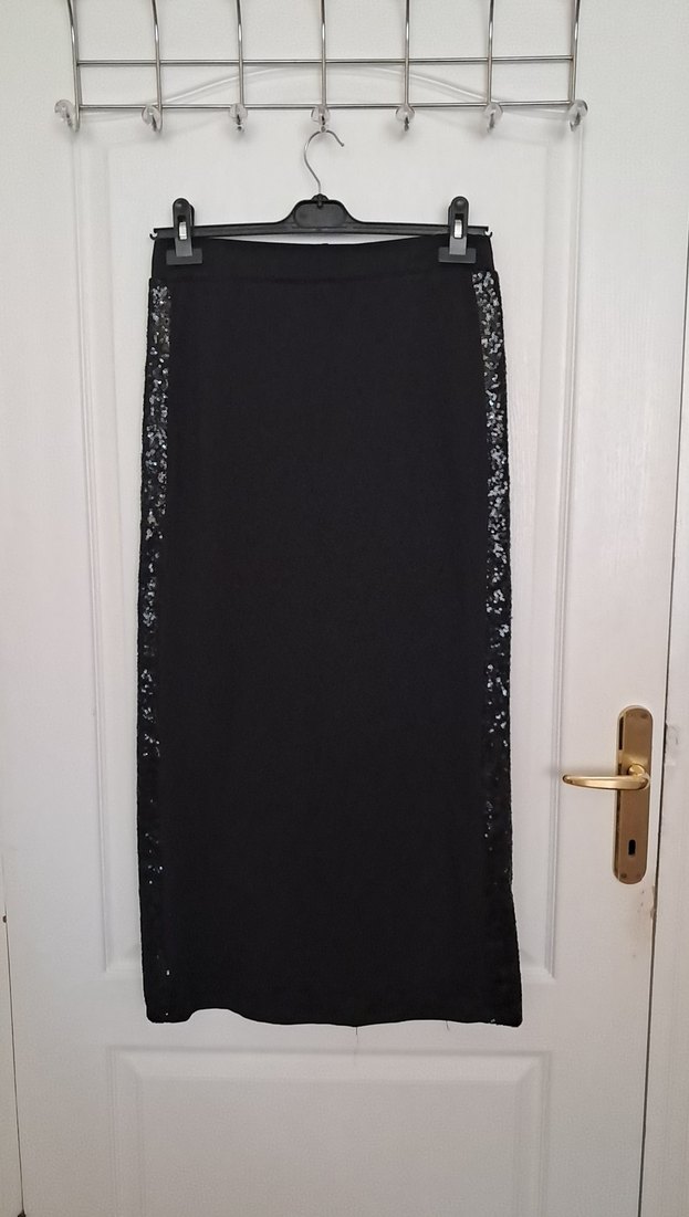 Siyah Drapeli Uzun Dar Etek