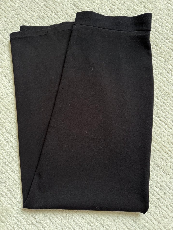 Drapeli tasarıma sahip, siyah etek. Düz ve şık, ofis kullanımı için uygun.