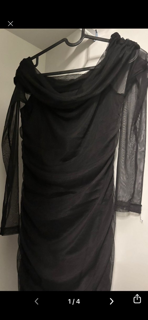 Siyah, drapeli ve tek omuz askılı uzun abiye elbise, gotik tarzı yansıtır. Dar kesim ve tekne yaka detaylarıyla parti için uygundur.