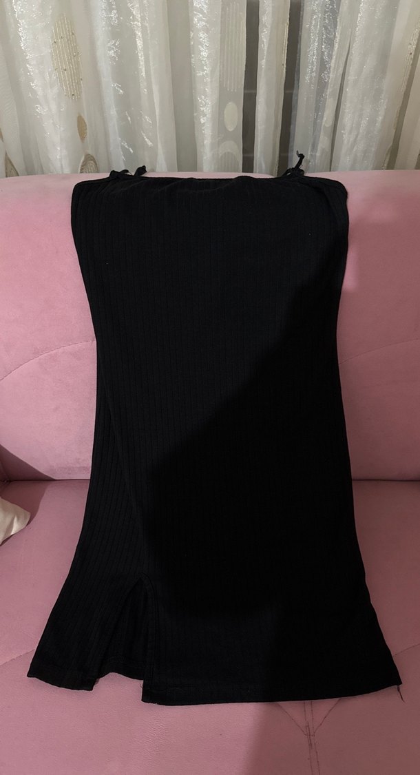 Siyah, drapeli detaylı, uzun ve vücuda oturan hamile eteği, ipeksi kumaştan yapılmıştır. Gotik tarzda, romantik akşamlar için uygundur.