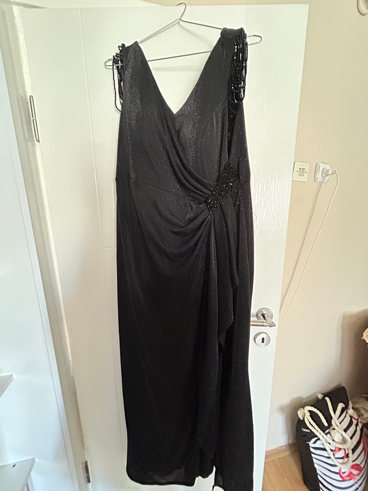 Siyah, simli, drapeli ve v yaka detaylı, kol kısmı kolsuz uzun abiye elbise, gotik tarzda klasik şıklık sunar. 1 hafta önce düğün için almıştım sadece 1 kere düğünde giydim. Temiz sorunsuz ve rahat bir elbise. 4500 tlye almıştım. Pazarlık yapabiliriz.