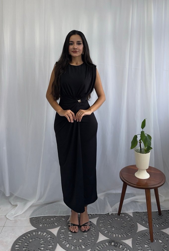 Siyah, askısız uzun elbise, drapeli detaylı ve regular fit. İpeksi kumaştan üretilmiş, ofis ve günlük kullanım için uygundur.