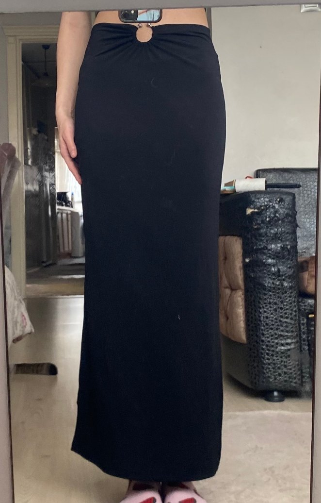 Siyah Drapeli Uzun Kadın Etek - Görsel 2