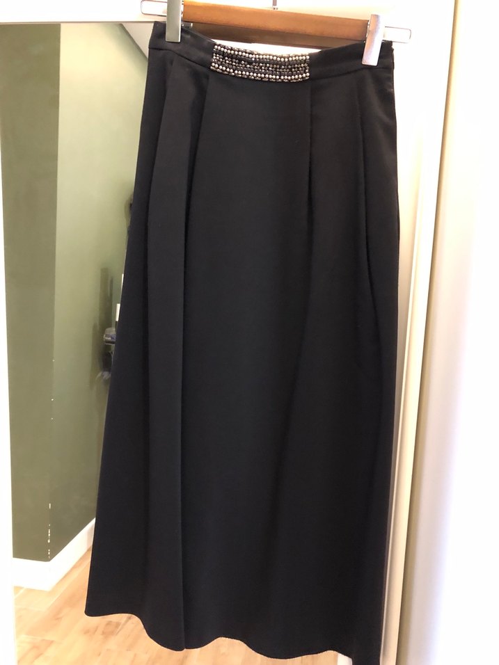 Siyah uzun etek, drapeli tasarım ve rahat kesimiyle öne çıkar. Ofis için uygun, minimal ve şık bir tarza sahiptir. ✨