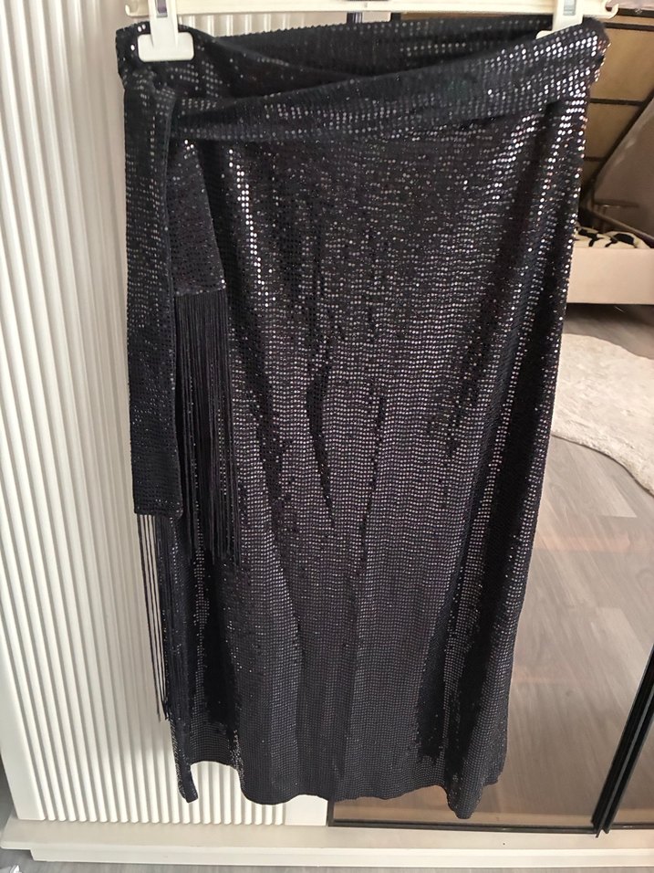 Siyah Drapeli Uzun Kadın Etek