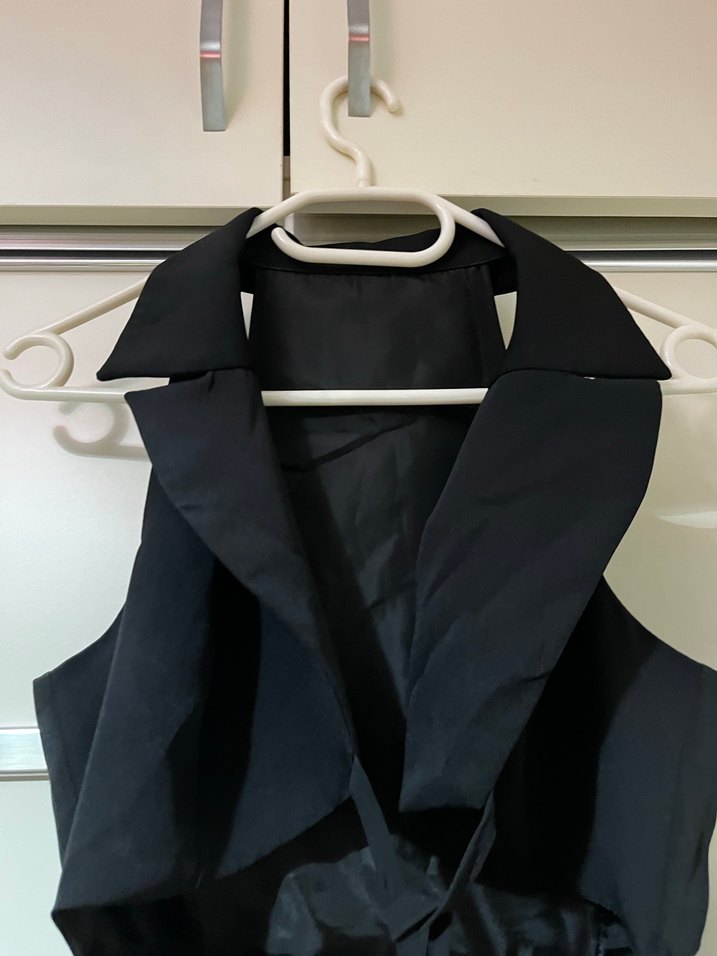 Siyah Drapeli Uzun Kollarsız Ofis Kabanı