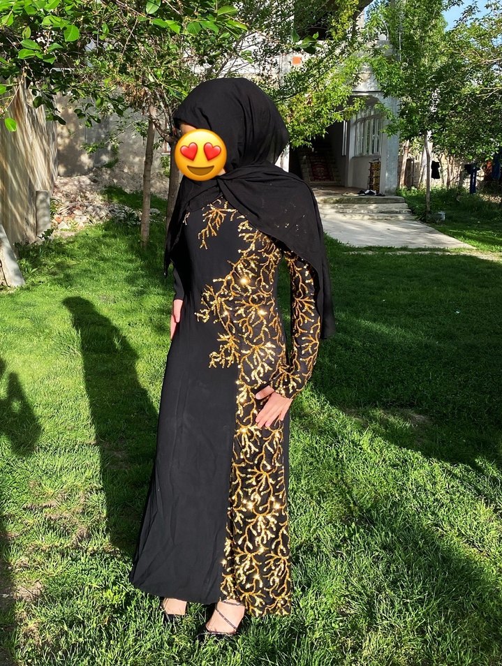 Siyah, drapeli sentetik kumaştan yapılmış, yüksek yakalı ve uzun kollu, desenli, fitted gotik uzun elbisedir. Günlük kullanıma uygundur.