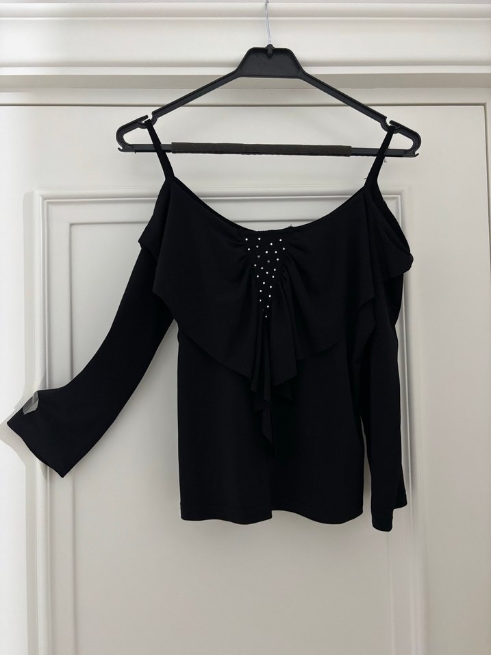 Siyah Drapeli Uzun Kollu Kadın Bluz