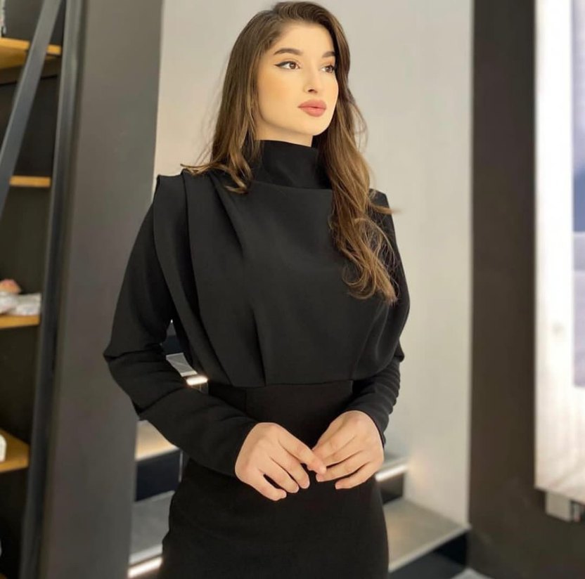 Siyah Drapeli Uzun Kollu Kadın Elbise