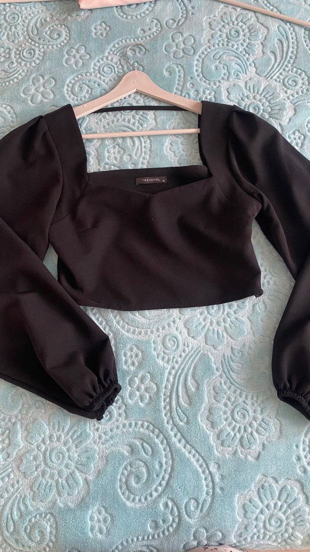 Trendyol Milla s-m beden uyumlu Siyah, uzun kollu, tek renk mini bluz, drapeli ve tekne yakalıdır. Sentetik kumaştan üretilmiş, trend günlük stile uygundur.