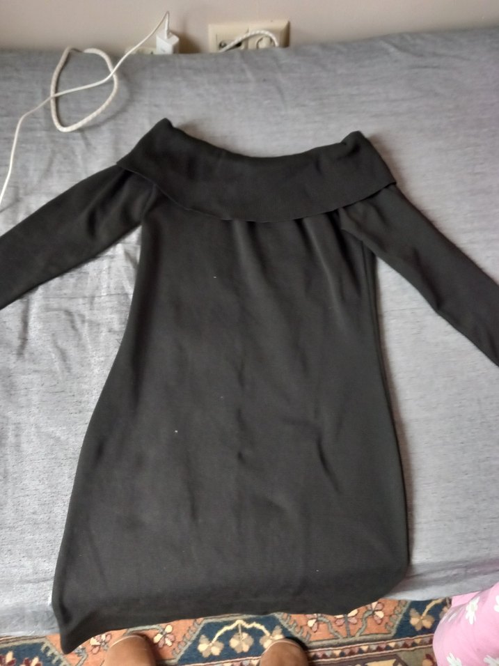 Siyah renkte, kayık yaka ve uzun kollu, vücuda oturan triko elbise. Drapeli detayı ve minimalist gotik tarzıyla günlük kullanıma uygundur.