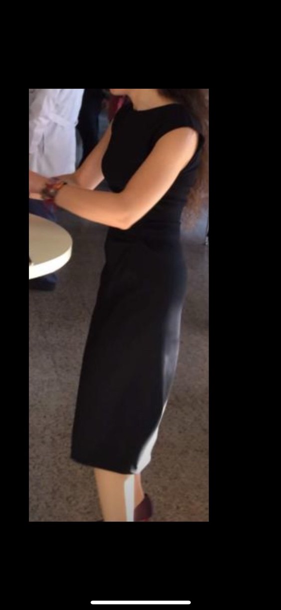 Sadece 1 saatlik bir kokteylde bir kez giydim. Siyah uzun elbise, drapeli detaylar ve V yakaya sahip, vücuda oturan kesimde. Düz sentetik kumaştan, minimal goth tarzında ofis kullanımı için uygundur. Kolsuz tasarım şıklık katıyor.
