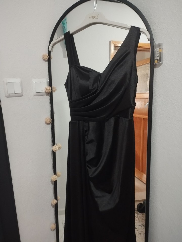 Siyah Drapeli Uzun Straplez Abiye Elbise