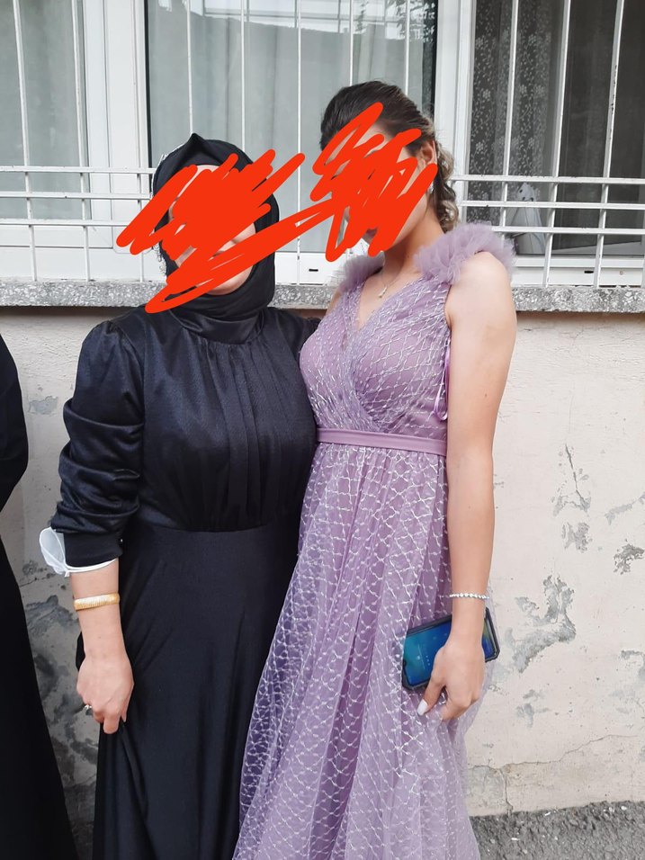 Koyu mor, straplez yaka ve drapeli tasarıma sahip bu dar kesim mezuniyet elbisesi, uzun boyu ve ince askılarıyla partiler için şık ve gotik bir görünüm sunar.