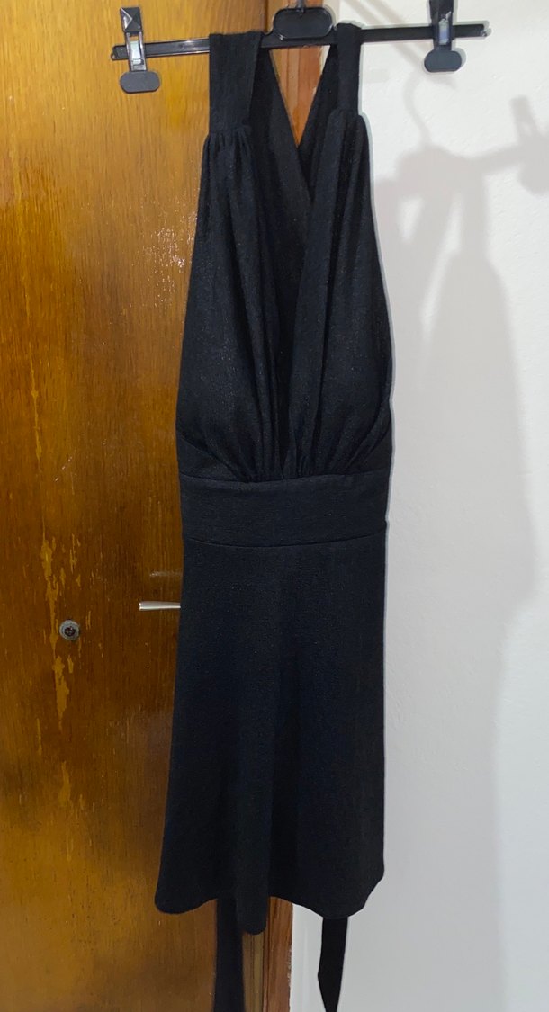 Drapeli tasarıma sahip, V yakalı, kolsuz, siyah ve vücuda oturan uzun abiye elbise. Minimalist ve şık goth tarzında, ofis için uygun.Elbisenin kendinden sütyeni vardır.