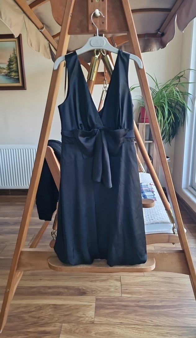 Siyah midi uzunlukta, v yaka ve kolsuz, drapeli detaylı, vücuda oturan abiye elbise. Romantik akşamlar için ideal, Paris tarzı gotik şıklık sunar.