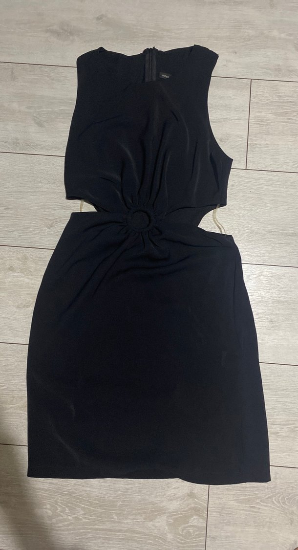 Siyah, dar kesim gece elbisesi, kolsuz, Bel kısmında drapeli detayları var. Yandaki tutan askılar dolapta beklemekten hafif sararmış hiç giymedim.