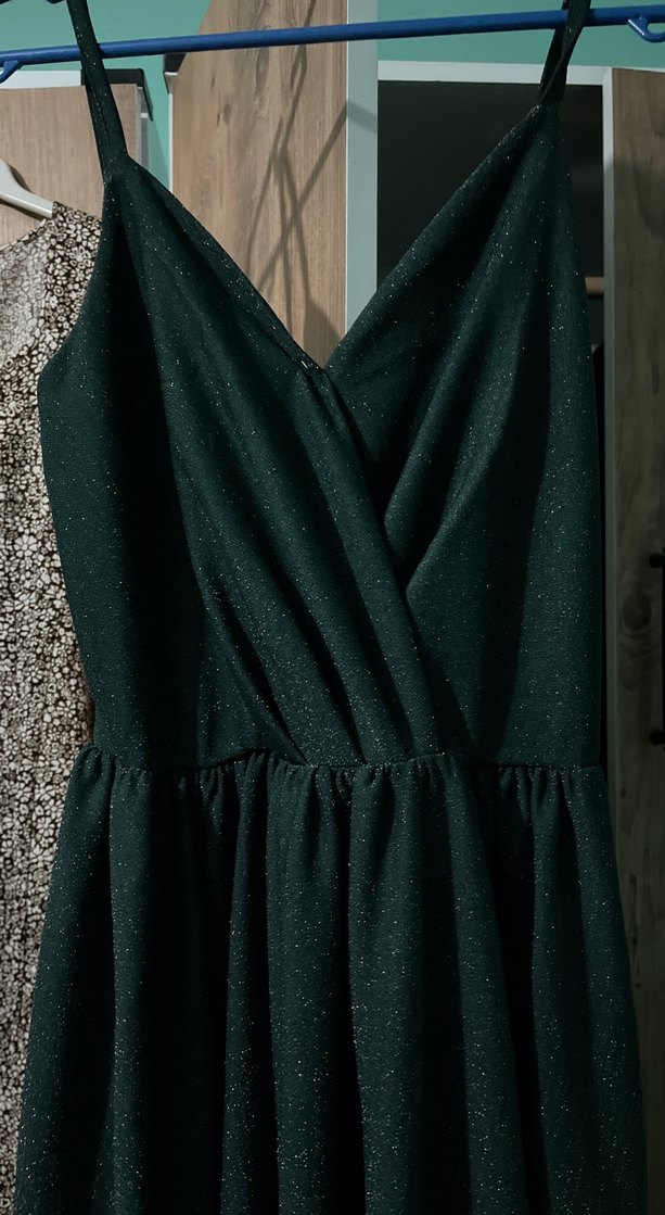 Drapeli tasarıma sahip, V yakalı ve kolsuz uzun siyah abiye elbise, rahat kesimiyle parti için uygundur. ✨