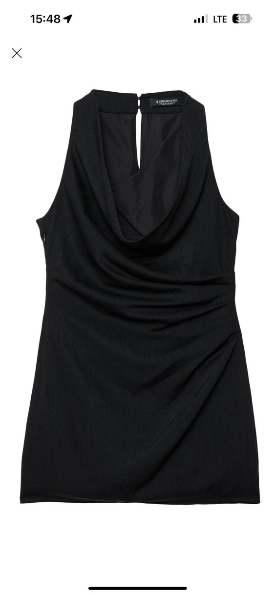 Siyah drapeli elbise. 1 kere giyildi sorunsuz ve kusursuz. Rahat bir kumaşa sahiptir.