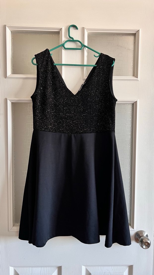 Siyah, kolsuz midi elbise, drapeli ve ışıltılı V yakalı üst kısmı ile romantik akşamlar için uygun, vücuda oturan kesime sahiptir. ✨