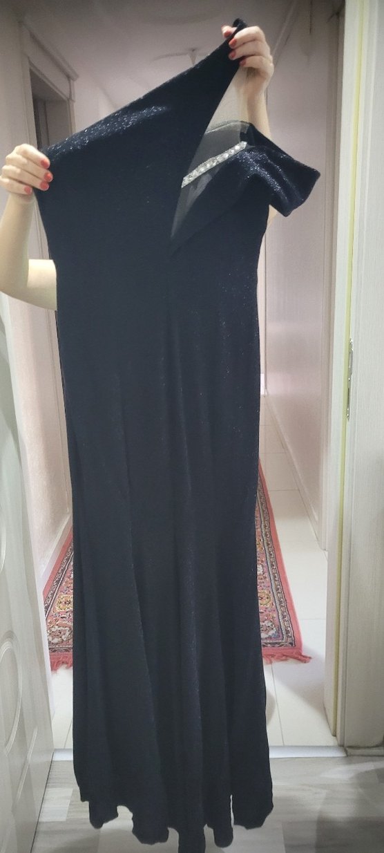 Siyah Drapeli V Yakalı Uzun Abiye Elbise