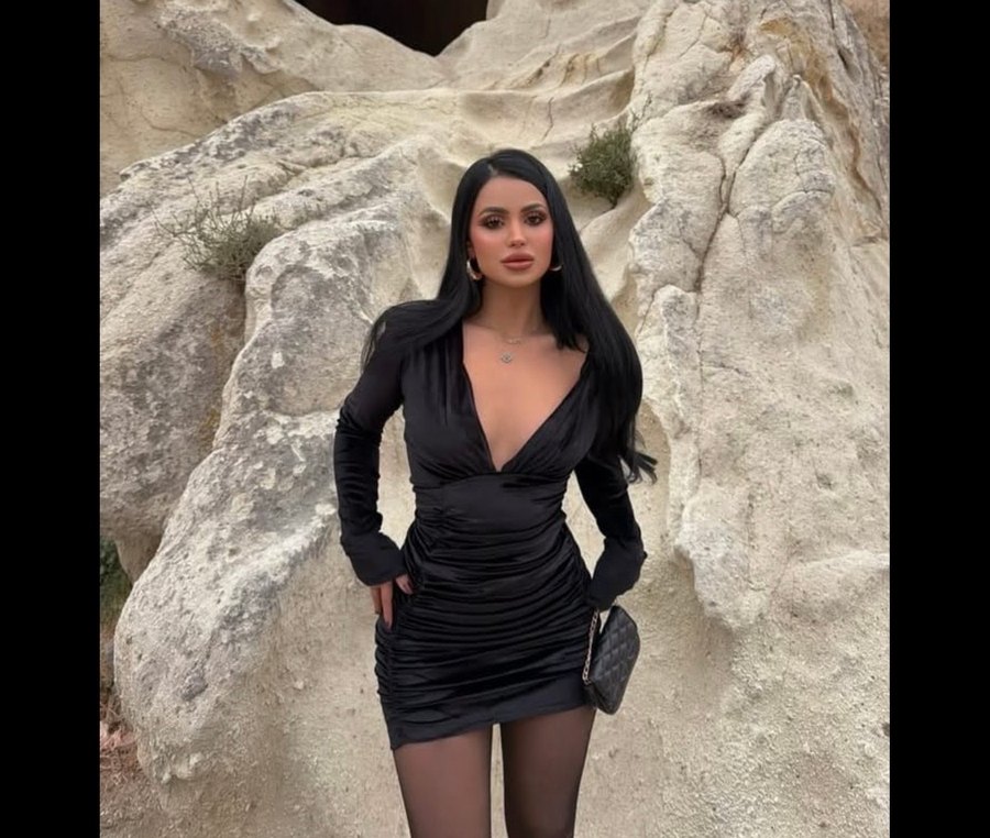 Siyah, drapeli detaylı, derin V yakalı ve uzun kollu, satenimsi dokulu dar kesim mini elbise. Cesur gotik tarzı için ideal, romantik akşamlar için uygun.
