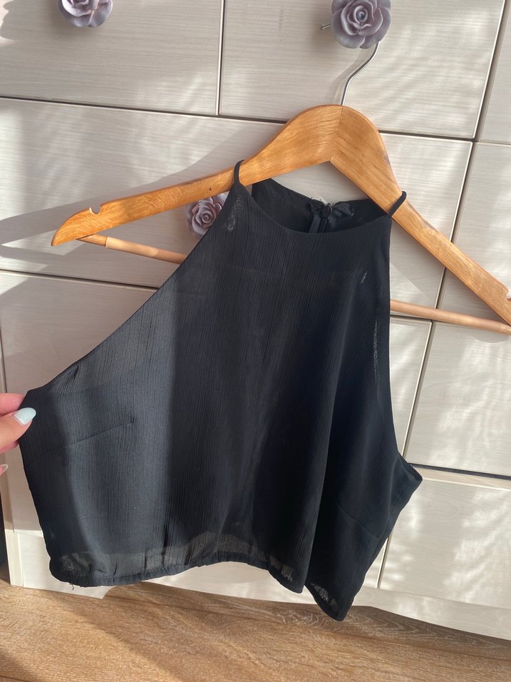 Siyah, yüksek yakalı ve kolsuz bu kadın atlet, drapeli tasarımı ve bol kesimiyle dikkat çeker. İpeksi kumaştan üretilmiştir, minimalist ve trend sokak stili sunar.