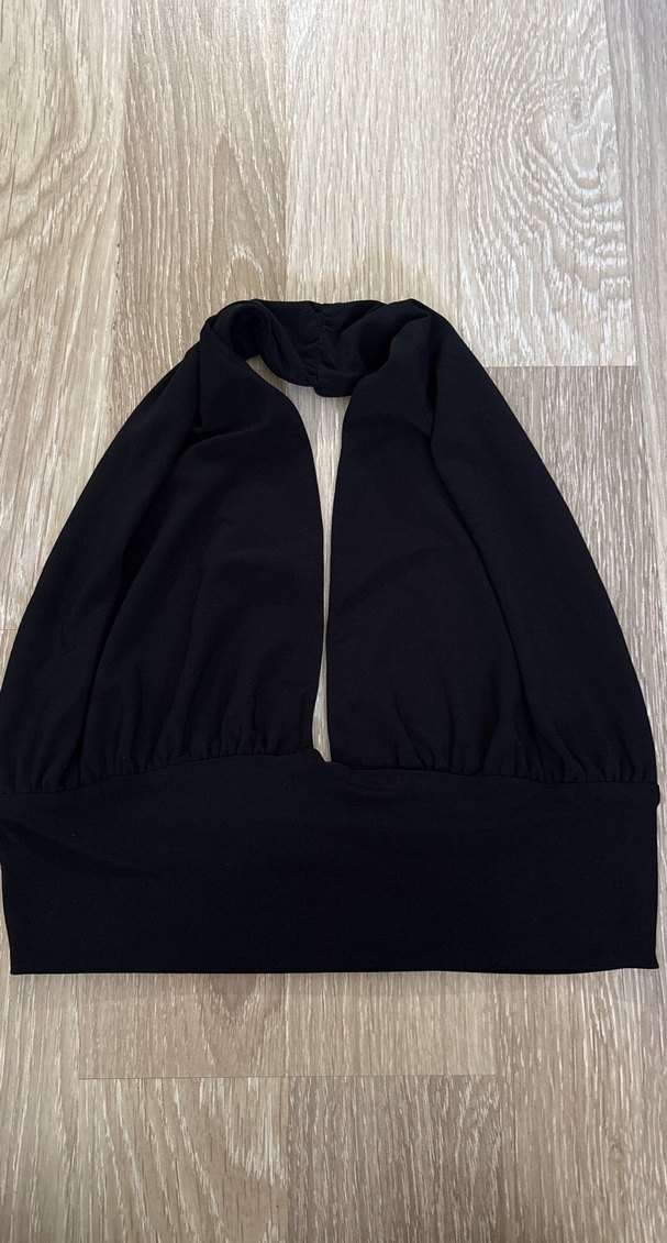 Siyah renkte, yüksek yakalı ve drapeli tasarıma sahip kadın bluzudur. vücuda oturan kesimi ve midi boy uzunluğu ile günlük kullanıma uygundur.