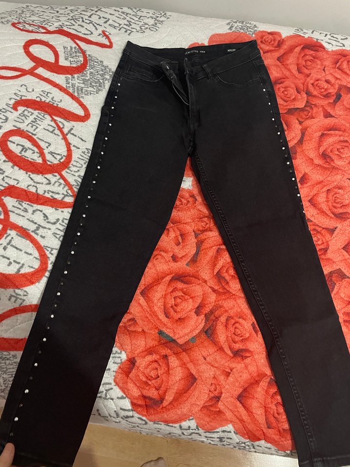 Düğmeli ve baskılı detaylara sahip siyah, slim fit kadın kot pantolon. Koyu denim kumaştan üretilmiştir, günlük kullanıma uygundur. 28 beden lcw marka