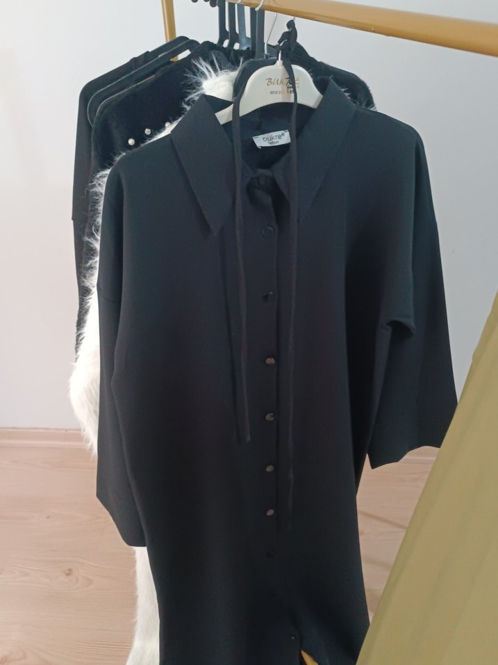 Siyah Düğmeli boydan elbise