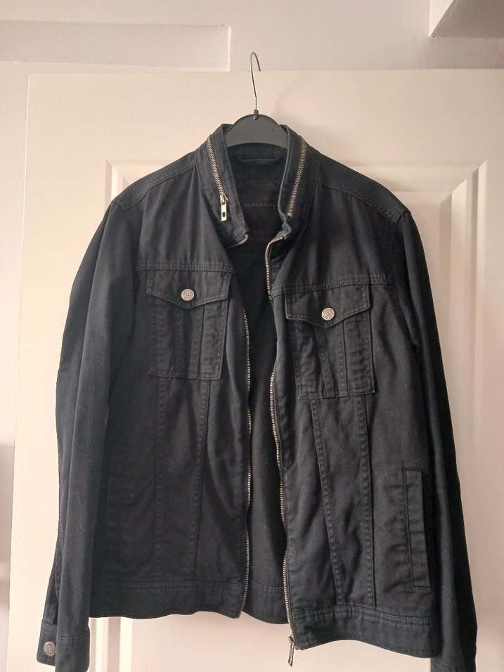 Siyah renkte, düğmeli ve normal uzunlukta denim ceket. Uzun kollu, regular fit ve notched lapel yakaya sahip, günlük kullanıma uygun bir parça.