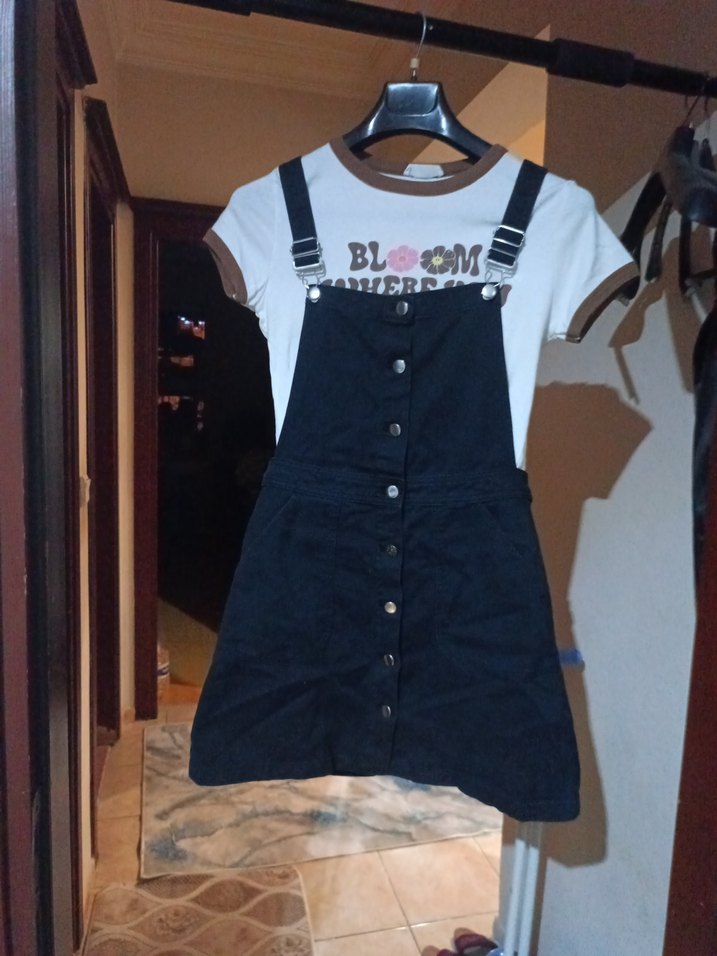 Askılı kot denim salopet elbise