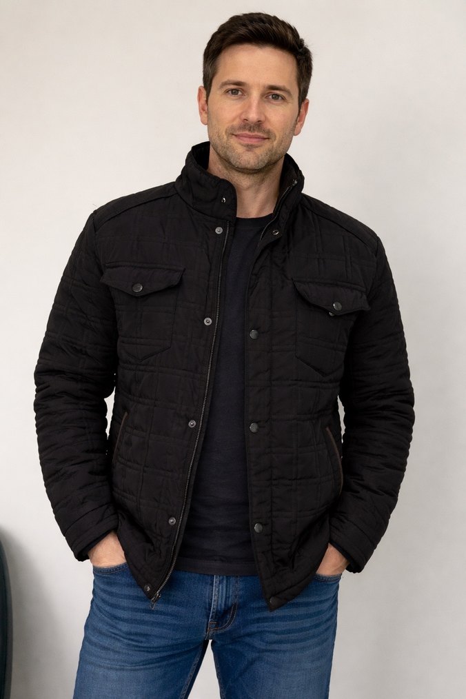 Bu siyah denim ceket, yuvarlak yaka, düğmeli kapama ve uzun kollara sahiptir. Normal uzunlukta ve regular fit kesimdir, günlük sokak stili için uygundur.