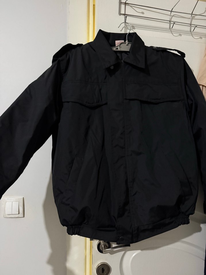 Siyah düğmeli erkek midi ceket, yakalı, uzun kollu ve bol kesimdir. Yumuşak ve sıcak kumaştan üretilmiştir, şişme monttur. Kalıbı büyüktür . Omuzlar büyüktür